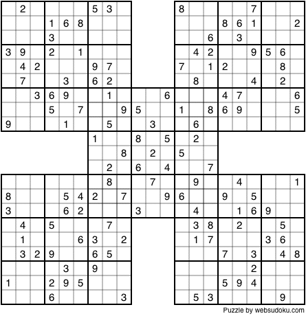 Instructions: Complete each of the five intersecting 9x9 puzzles just like a regular Sudoku.